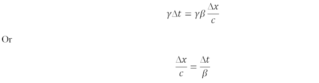 This time we use the time equation and the fact that delta-t' = 0 to get: